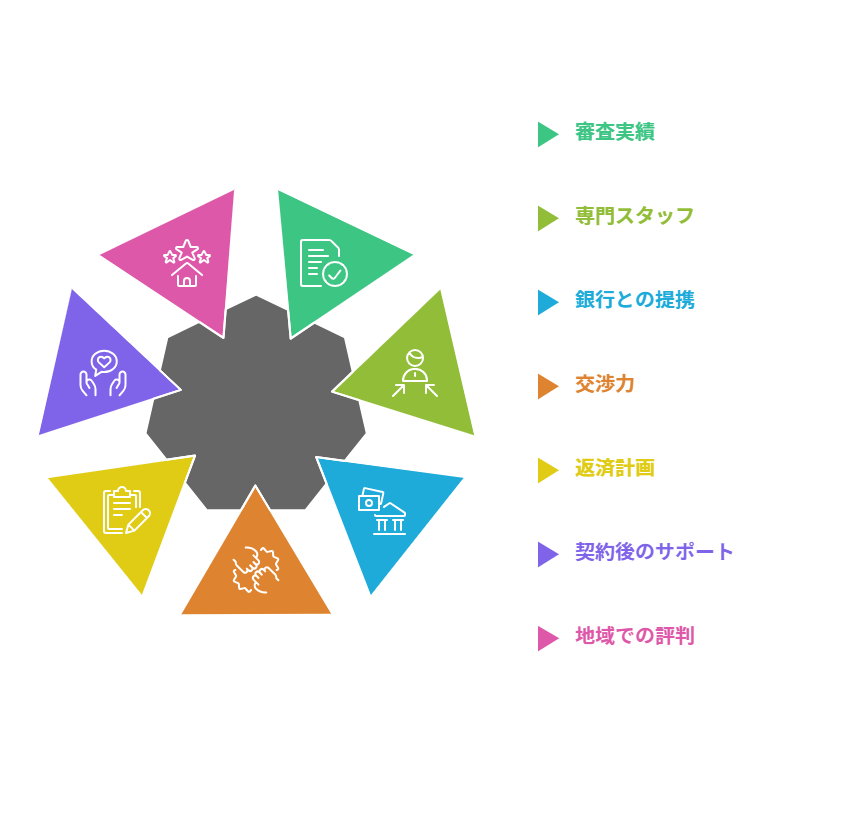 「ローンに強い」とうたう不動産会社は多いですが、実際にどの会社を信頼して相談すべきか迷う方も多いでしょう。大切なのは、「実績」「人」「提携力」という3つの視点で会社を見極めることです。これらは審査通過率やサポートの質に直結します。