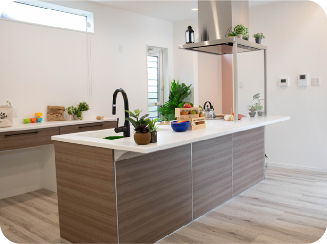 - アイランドキッチンのある家