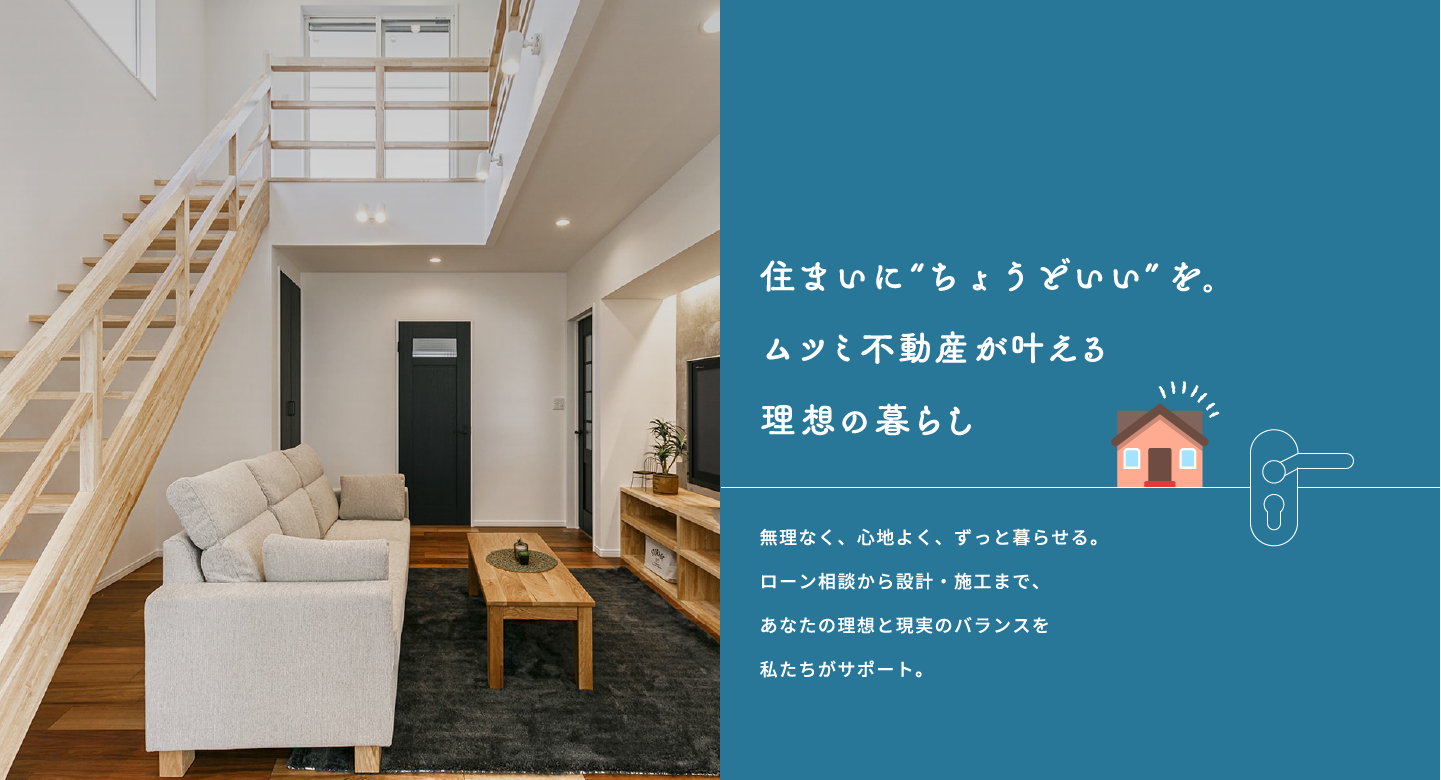 ローン審査が不安 - 予算やデザイン、設備のバランスが分からず迷っていませんか?理想の家には「快適さ」「見た目」「コスト」の三拍子が必要ですが、どれかに偏ると後悔することも。ムツミ不動産では、あなたのライフスタイルやご予算に合わせて、無理なく満足できる“ちょうどいい”プランをご提案します。優先順位の付け方やコストコントロールのポイントも丁寧にアドバイスします。